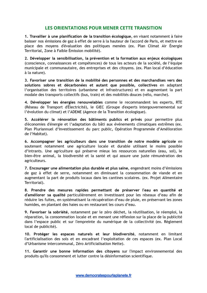 - d’un accompagnement par les équipes des Démocrates pour la Planète,
